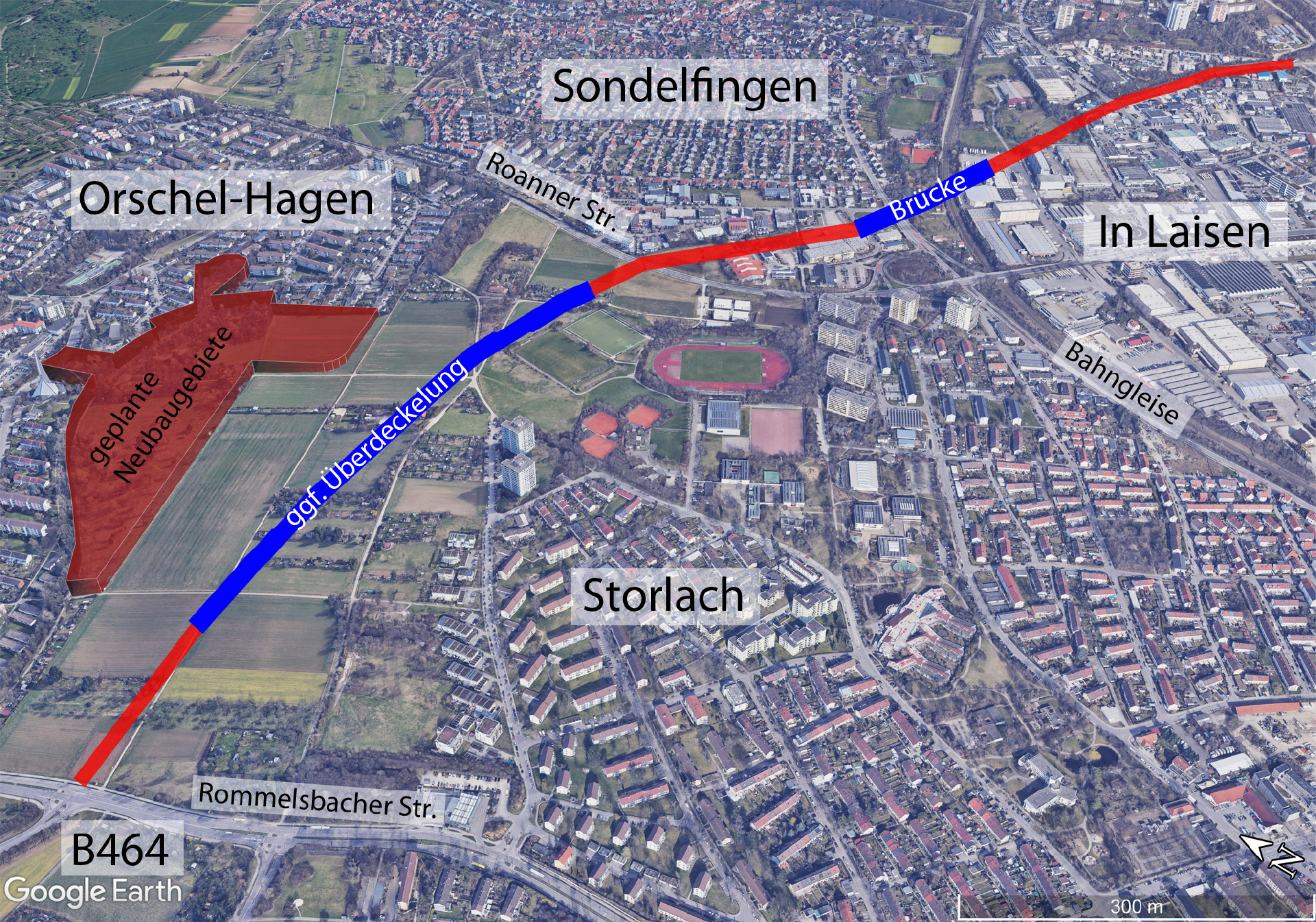 - Keine Umfahrung, die Trasse liegt auf dem Gebiet der Reutlinger Kernstadt!